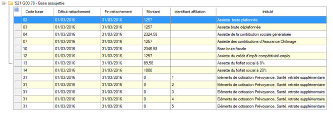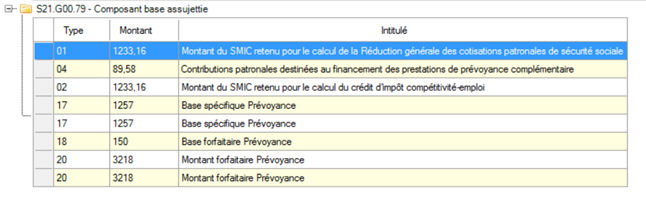 - Pour chaque base assujettie, un composant est généré indiquant le type base assujettie et son montant.